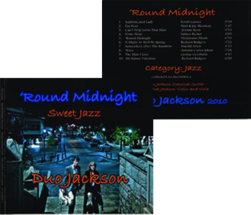 All pieces are original arrangements by Duo Jackson incorporating improvisation. It has been our intention with the recording to reproduce as faithfully as possible, the sound of the instruments as they would be heard in a concert performance. For the recording the guitar we used a pair of AKG414B-uls and for the violin, a pair of Rode NT2 mics.
